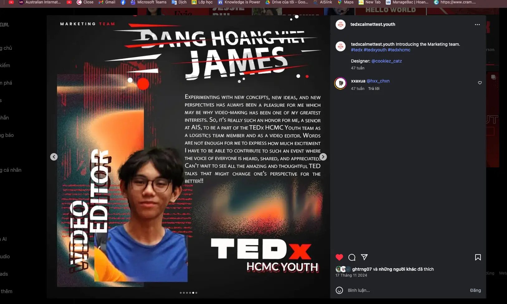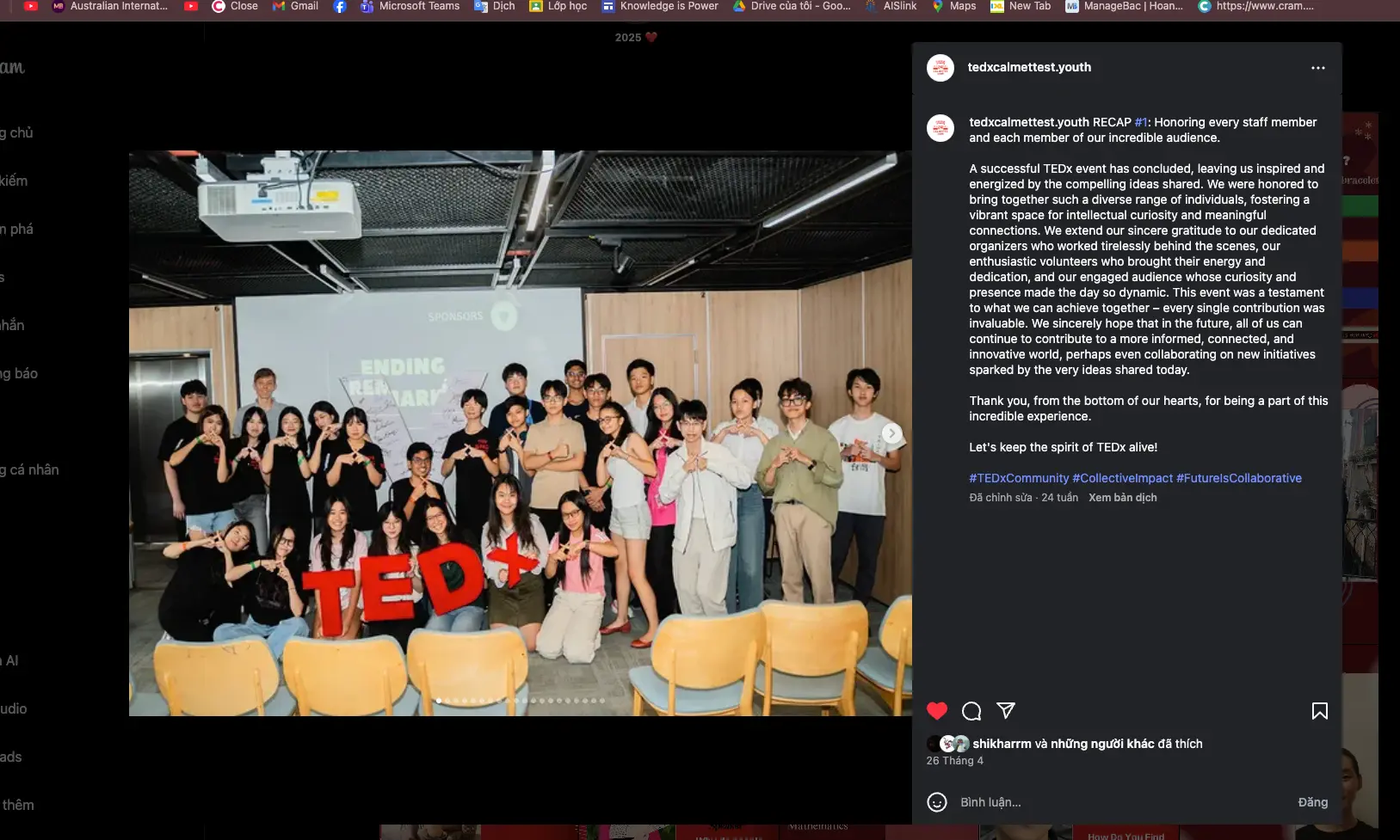Role: Member of the Marketing & Logistics Division at the TEDx Youth@Calmette 2025 (2024 -2025)