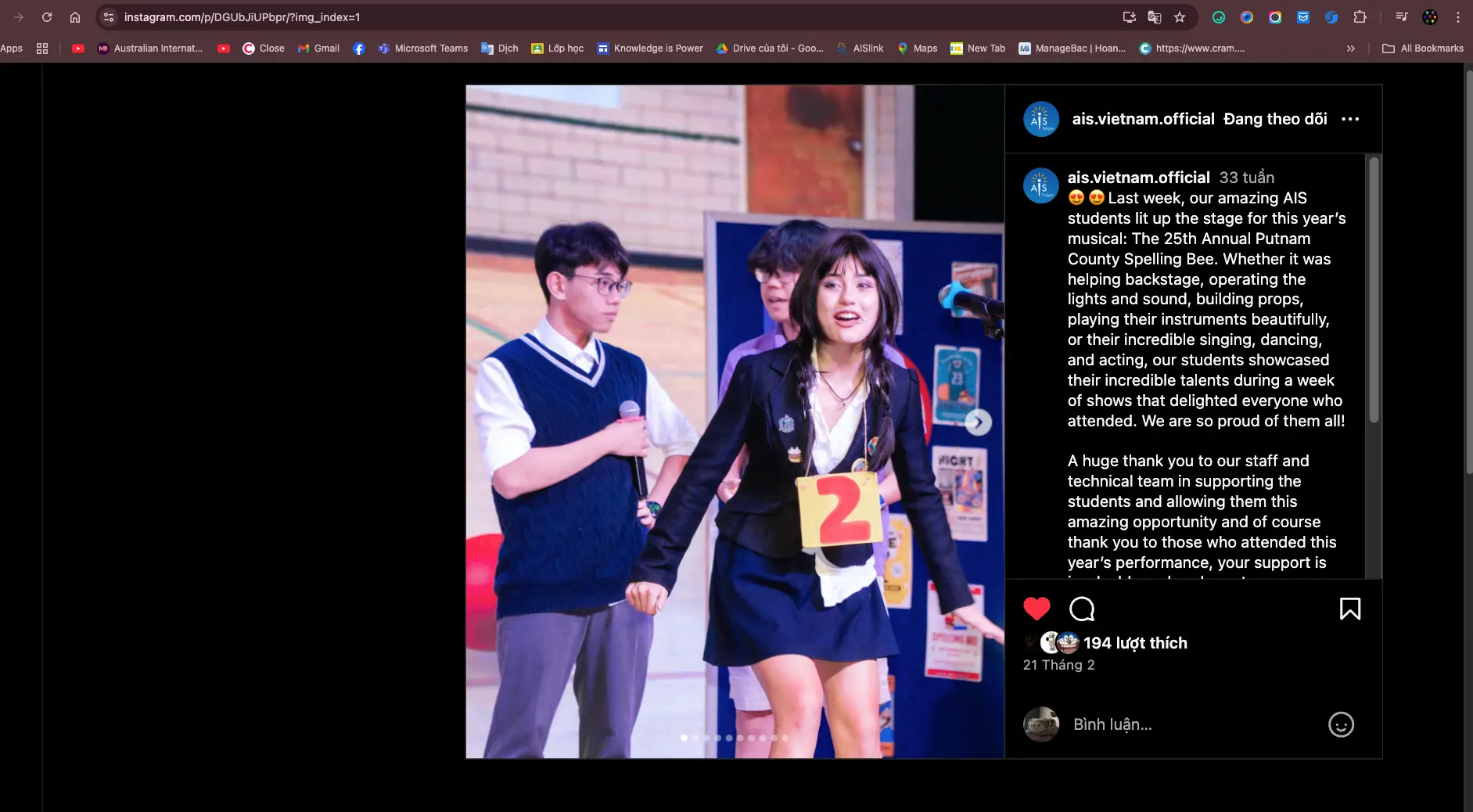 Story: This was my first being involed in a school musical production where I was playing the character "William Morris Barfee" in the show: "25th Putnam County Spelling Bee". I and the other cast members with my main director went through a staggering 6 months of preparing and rehearsing, focusing memorizing the characters’ lines as well as the vocal and choreography. It was a lot to take in for me, especially in the current IB schedule with deadlines coming up. But somehow, I enjoyed this process a lot. I felt safe expressing my own feeling through the characters with no shame. The casts were such a supportive community that had actually made me felt belonged. We enjoyed messing up our lines together, singing completely off-tone, making dumb mistakes and eating pizzas together. The more I worked with the cast, the more I felt in love by their charisma and positive altitude. It was such an honor and privillege to work with them.